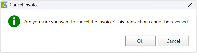 With a click on the button Cancel invoice in Vertec the following question appears with the warning that the cancellation cannot be undone.