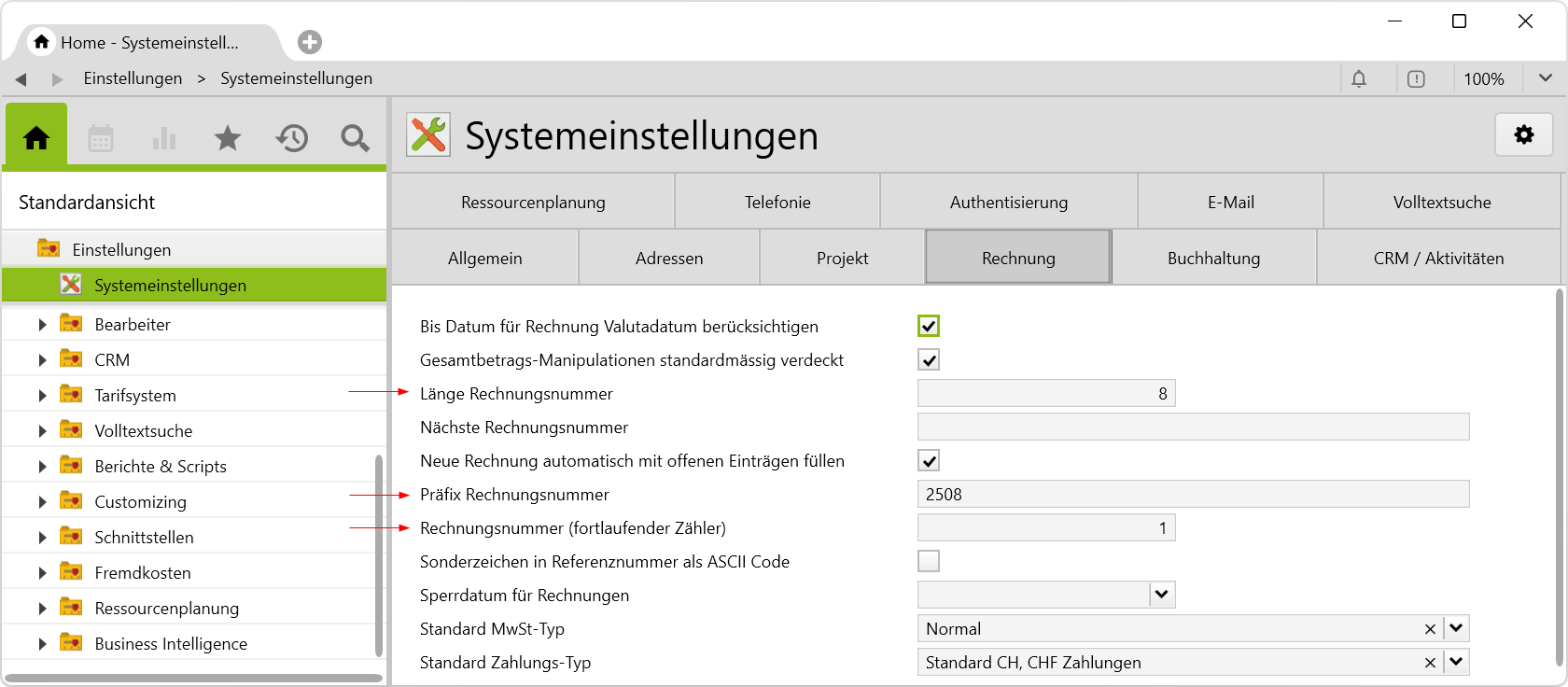 in der Section Rechnung angelegt. Damit wird die bisherige Systemeinstellung Nächste Rechnungsnummer
