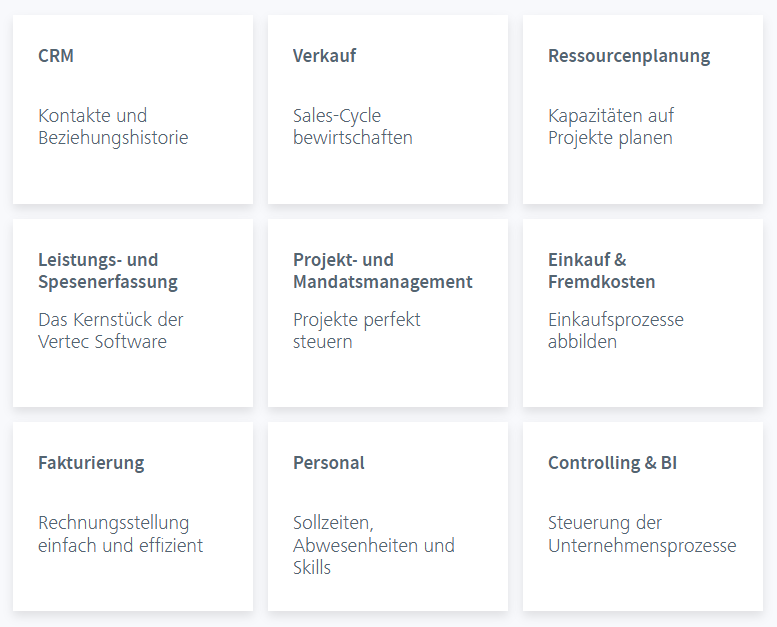 Die 9 Module in Vertec: Ideal aufgestellt vom CRM bis zum Controlling