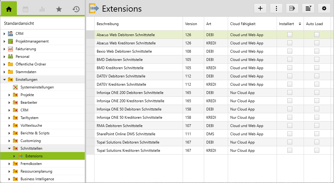 Extensions müssen in Vertec installiert werden, damit ihre Funktionalität zur Verfügung steht.