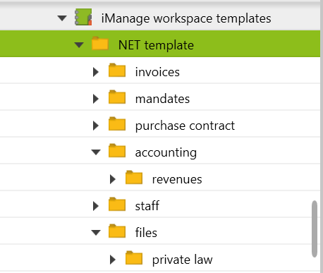 Before updating the projects/cases in iManage, it is important to create a final folder structure in the workspace templates. It is therefore important, as the folder structure cannot be modified once updated (folders can still be added manually in iManage). For a consistent workflow, you can set the document path for the objects (activity & invoice) to be updated in iManage via the class settings.