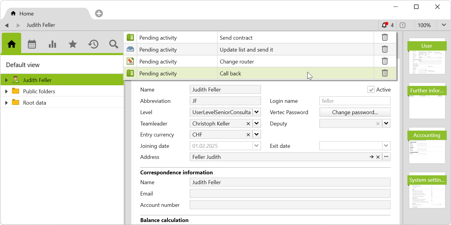 If the person responsible for the activity has changed, the new person responsible receives a notification and the notification on the former person is deleted.