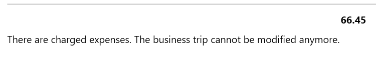 A trip can theoretically still be changed, even if expenses of the trip have already been charged. In this case, however, these expenses can no longer be adjusted. There is then a corresponding note on the travel page: