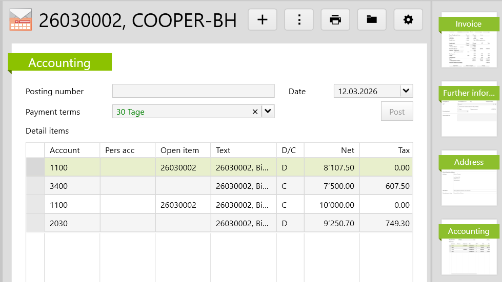 In this case, the posting document looks like this: