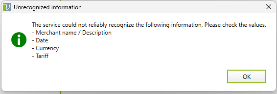If an error occurs while reading the expense receipt, for example because there is no server connection, the image is loaded, but the values cannot be recognized. In this case, you can use the Recognize receipt item in the Actions menu for the full-featured apps: