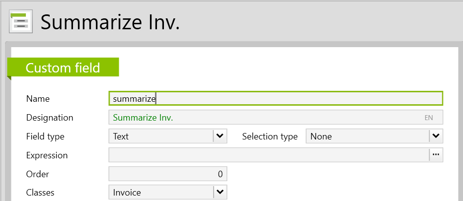 First, a new custom field is created in which the summary is to be shown. To do so, go to Settings > Customize > Custom field.