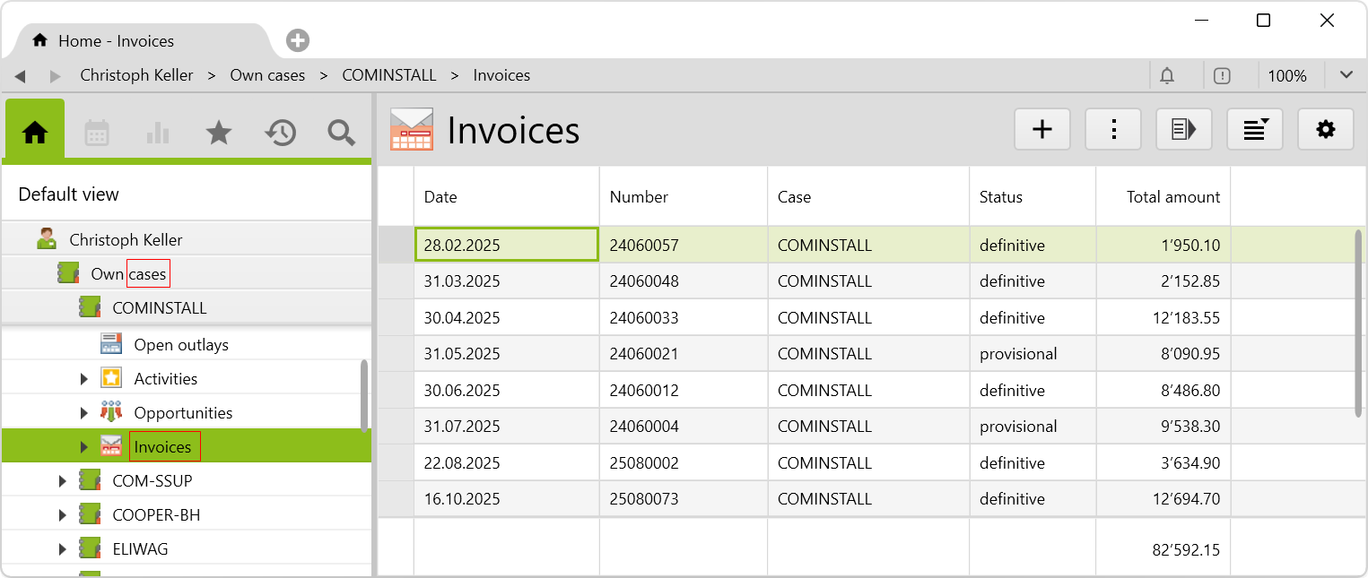 This additional feature replaces the term Honorarnote with Rechnung. For this purpose, 265 Translations are created when importing the config set. All other terms specific to the mandate remain.